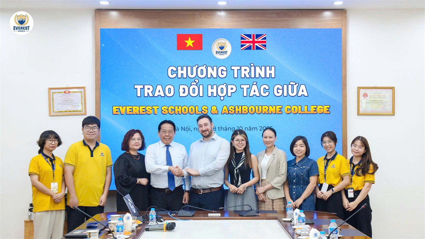 Sáng ngày 28/10/2025, đại diện Ashbourne College (London, Vương quốc Anh) cùng Công ty Quốc Tế Việt – đối tác tuyển sinh chính thức của trường tại Việt Nam – đã có buổi thăm và làm việc tại Hệ thống Giáo dục Everest (Everest School).