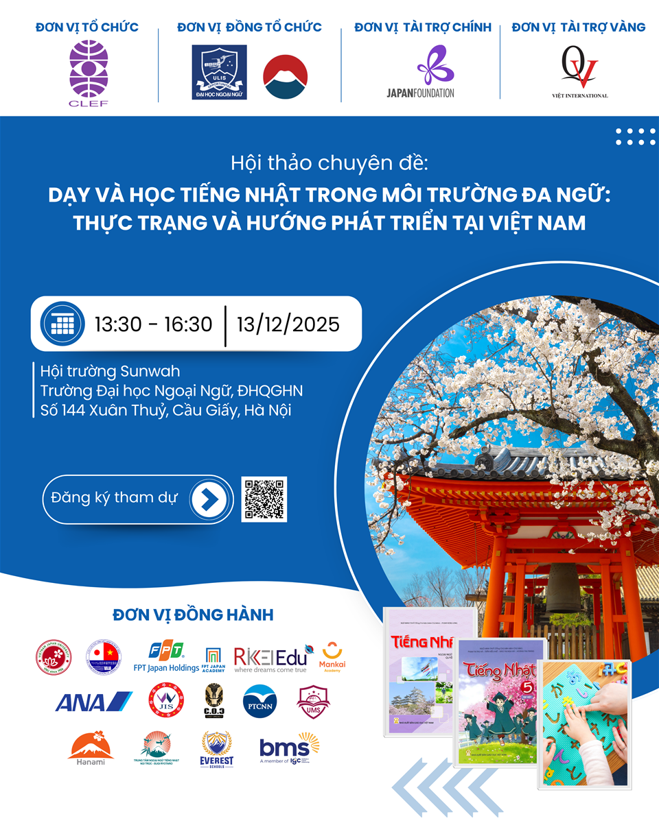 Hội thảo do Viện Nghiên cứu Phát triển Văn hóa, Ngôn ngữ và Giáo dục (CLEF) phối hợp cùng Trường Đại học Ngoại ngữ – ĐHQGHN tổ chức, với sự đồng hành của nhiều trường đại học, viện nghiên cứu và các cơ quan giáo dục trên toàn quốc.